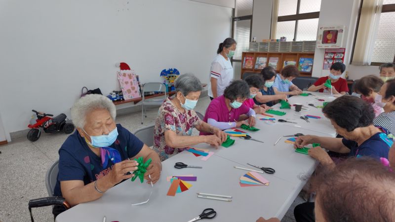 銀髮巧手舞春風,彩紙翩翩化蕊紅。